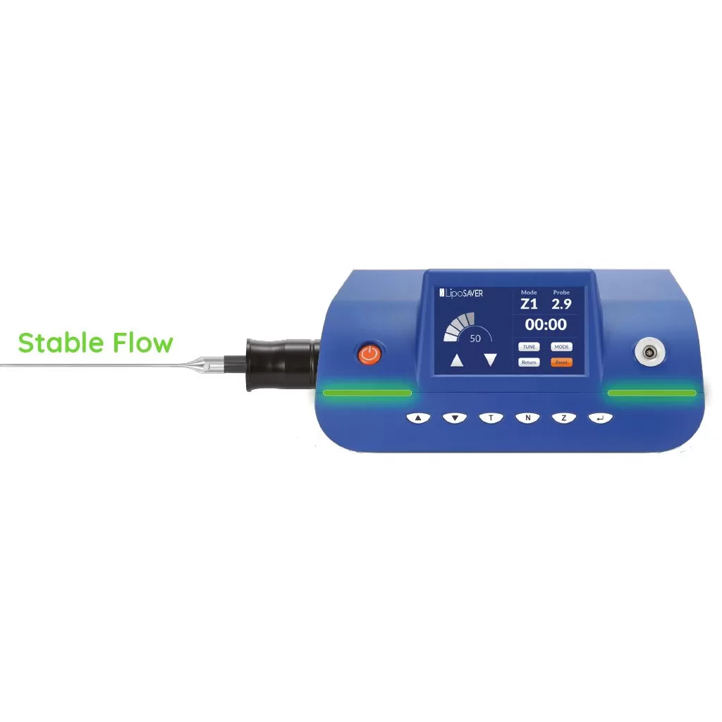 LipoSaver is equipped with an LED light system that provides real continuous dialogue between the device and the surgeon, clearly reporting the probe performance in real-time.