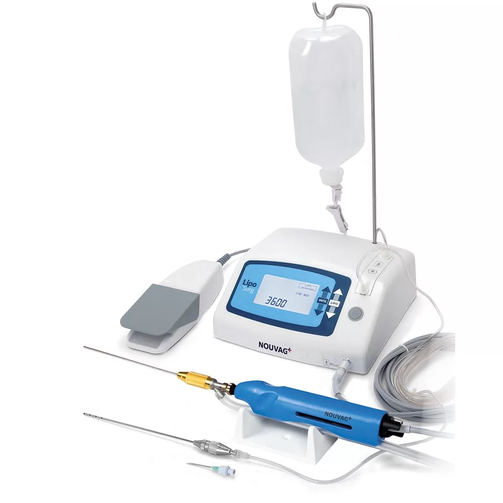 For effective fat suction, it is recommended to combine this compact system with the NOUVAG Vacuson 60 suction pump. The suction pump provides a high flow rate of up to 70 litres per minute.